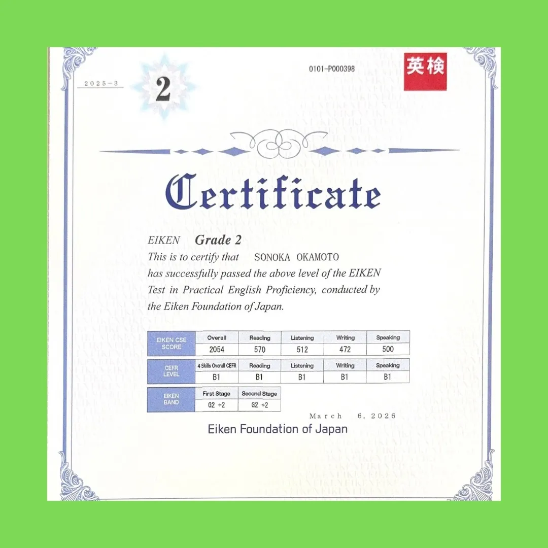 【英検2級に合格しました!】